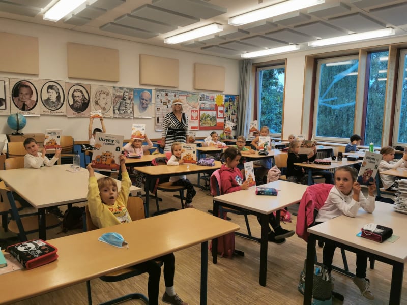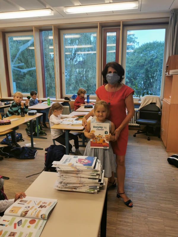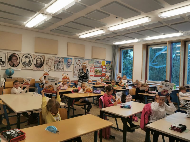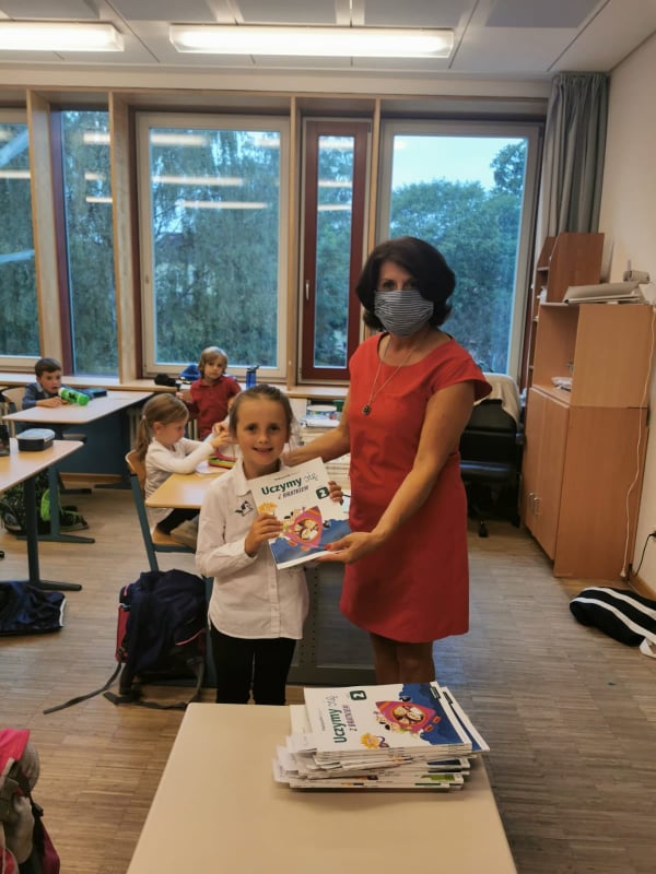 Następnie wypożyczyła przejętym maluszkom ich pierwszy podręcznik.