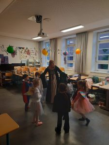Podczas karnawału nie zabrakło wspólnych tańców, zabaw ruchowych oraz konkursów, które dostarczyły wszystkim wiele radości. Dzieci z entuzjazmem brały udział w przygotowanych atrakcjach, a wspaniała atmosfera sprzyjała integracji i dobrej zabawie.